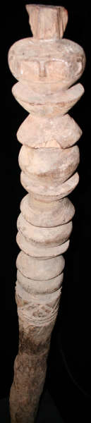 This apotropaic figure represents an important Bongo dignitary and was placed on